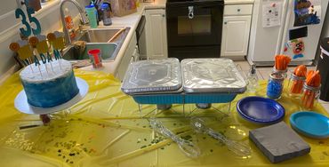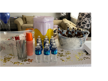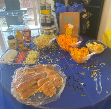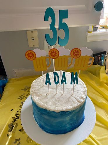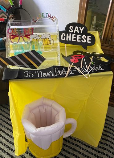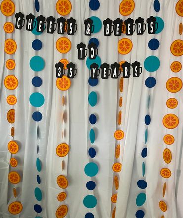 For this Cheers & Beers to 35 Years birthday bash, AliKay Events was in charge of everything from the menu, overall design, layout, event setup and breakdown. AliKay Events created special unique touches for the banners, confetti, photo booth, party favors, present wrappings & water bottle wraps. AliKay events also provided rentals for tables, linens, buffet & drink table equipment, & outdoor and table games.
