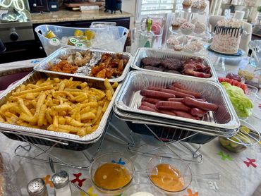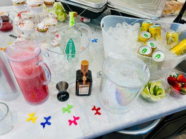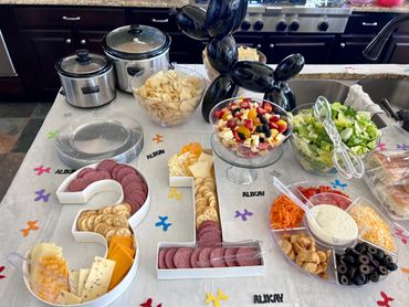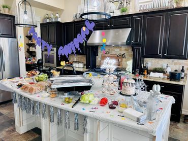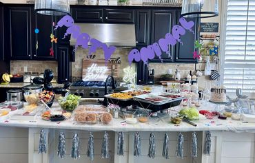 For this Birthday Bash, AliKay Events was in charge of everything from the menu, overall design, layout, event setup and breakdown. AliKay Events created special unique touches for the entry sign, banners, confetti, & photo booth. AliKay events also provided rentals for tables, linens, buffet & drink table equipment.