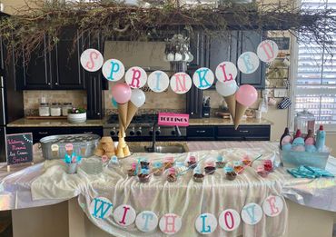 For this Sprinkled with Love, Mother's Day bash, AliKay Events was in charge of everything from the menu, overall design, layout, event setup and breakdown. AliKay Events created special unique touches for the invitations, chalk board sign, banners, & photo booth. AliKay events also provided rentals for tables, linens, and buffet & drink table equipment.